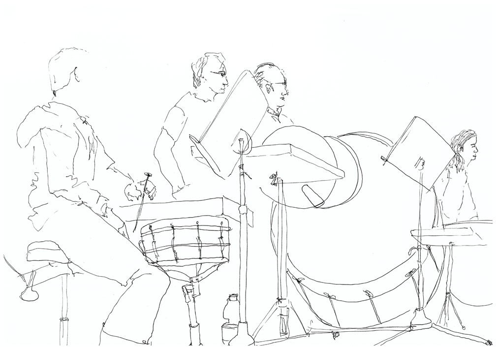 Susanne Kocks, Zeichnung, Schlagzeug, Percussion, Deutsche Radio Philharmonie, DRP, Fineliner/Faserstift auf Papier