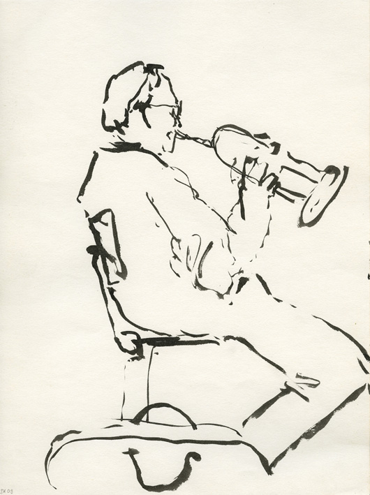 Susanne Kocks, Zeichnung, Trompeter, Deutsche Radio Philharmonie, DRP, Tusche, Pinsel
