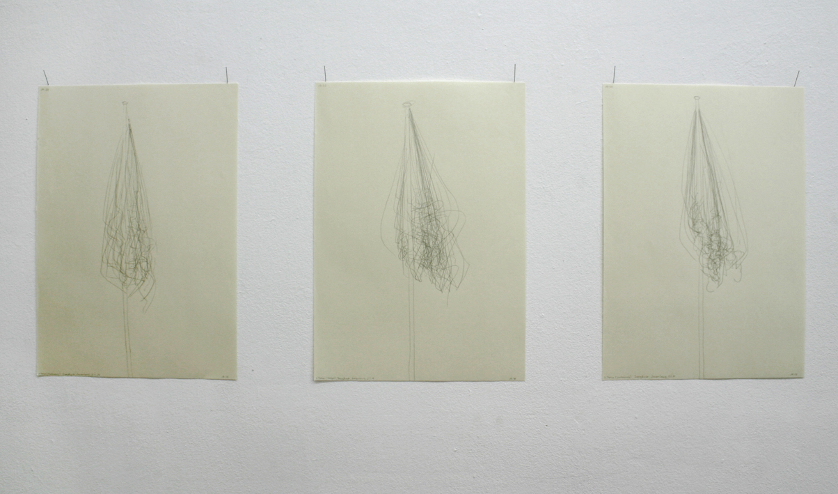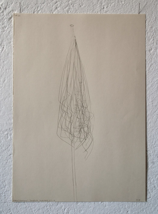 1. Fahne (Luxembourg) 2. Fahne (Europa) 3. Fahne (Luxembourg), Bourglinster, Luxembourg, 11.3.14 Bleistift auf Papier 42 x 29,7 cm