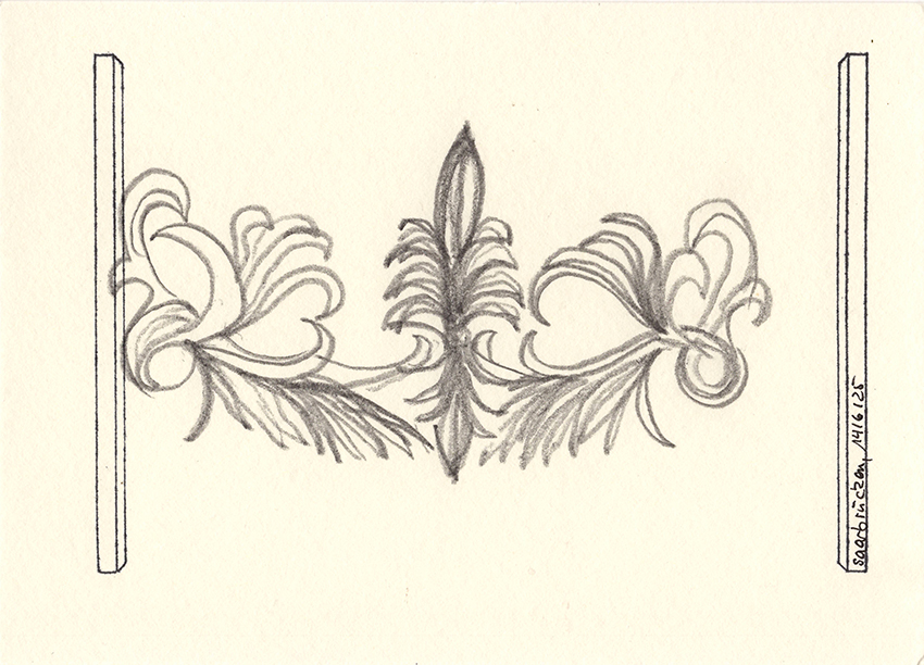 Der gestempelte Rahmen wurde in Kooperation mit der luxemburgischen Künstlerin Laurianne Bixhain gestaltet.