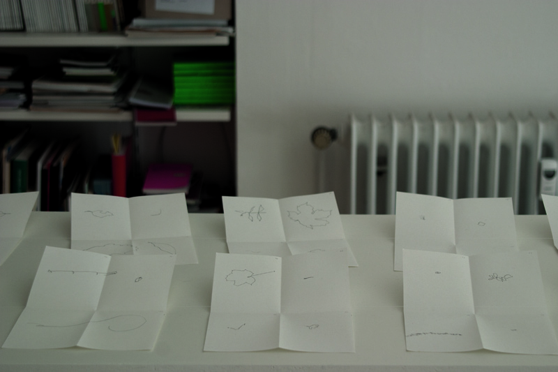 Ich begebe mich auf die Suche nach unterschiedlichen Situationen und Abläufen, die ich vor Ort beobachte und in seriellen Zeichnungen durch protokollähnliche Verfahren erfasse. Die Herangehensweise hängt von den jeweils vorgefundenen Bedingungen ab. Im Zeichenprozess spiele ich bewusst mit meinen Wahrnehmungsfiltern, deren variable Durchlässigkeit von Zeichnung zu Zeichnung sichtbar wird.